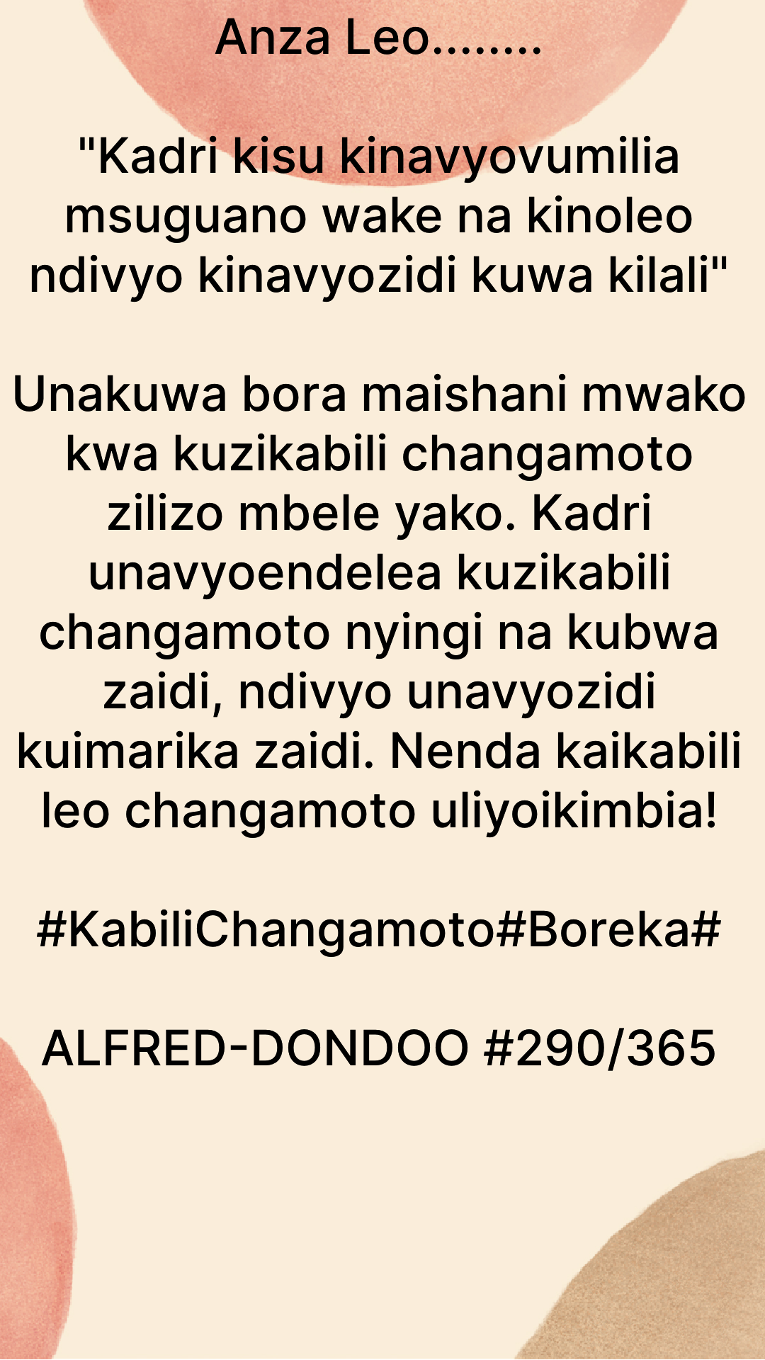 amshauwezo290/365: Kisu hutamani msuguano na kinoleo ili kiwe kilali….|